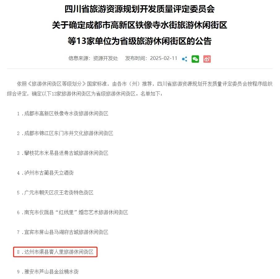 近日,四川省旅游資源規(guī)劃開發(fā)質(zhì)量評(píng)定委員會(huì)發(fā)布公告,13家單位達(dá)到省級(jí)旅游休閑街區(qū)標(biāo)準(zhǔn),正式確定為省級(jí)旅游休閑街區(qū)。其中,晟景文旅服務(wù)項(xiàng)目達(dá)州市渠縣賨人里旅游休閑街區(qū)名列其中,成功榮獲這一殊榮。